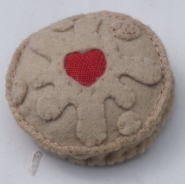 The biscuit is made from felt with a red linen jammy centre - I had to buy a packet so that i could use the biscuit as a template !
