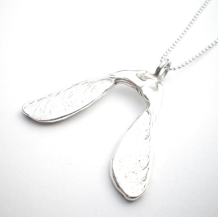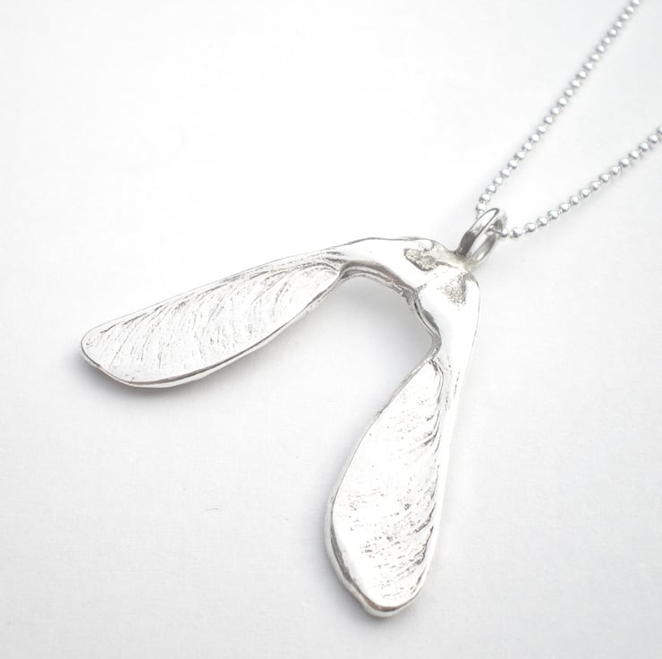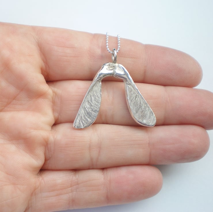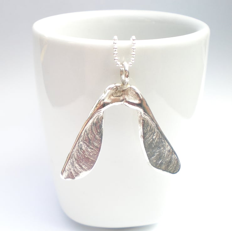 Made from a cast taken from a real sycamore seed this pretty pendant has been highly polished to make the intricate detail of the seed really stand out. (also available in an oxidisied finish).