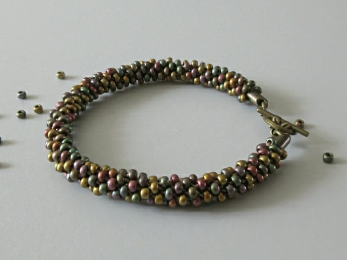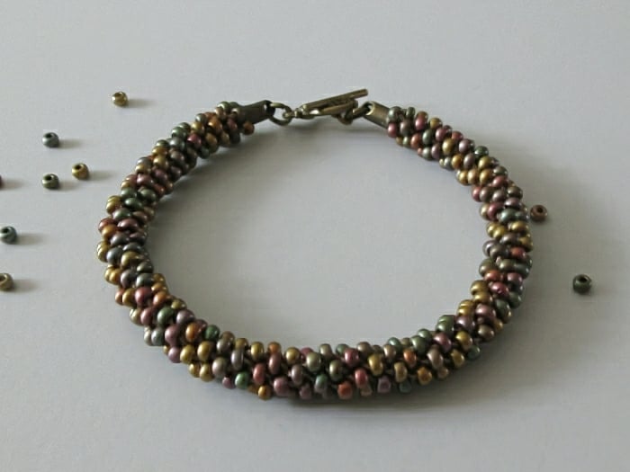 I made this Kumihimo bracelet using 3mm Preciosa Czech glass seed beads.