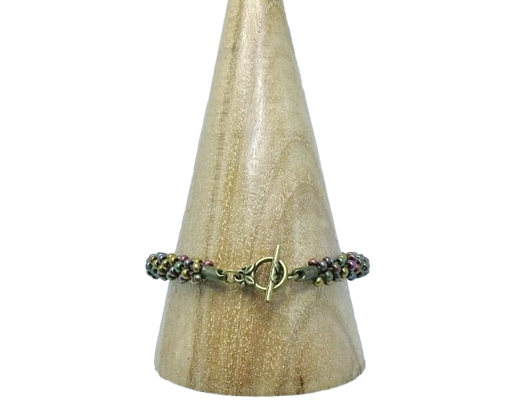 The toggle clasp has been plated bronze to give it an antique look and goes really well will the beads I have used for this bracelet.