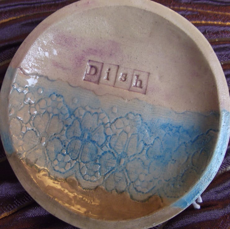 Beautiful, contemporary and slightly different, these ceramic little dishes are individually handmade from stoneware clay. Once rolled by hand, antique lace is impressed into the clay and the shape is cut, letters are stamped into the clay. The bowls are twice fired and finished with a really unique glaze. Useful to have on the dressing table, beside the bed or in the hall! 11cm dia