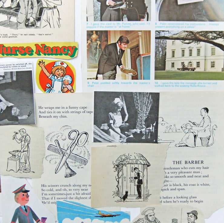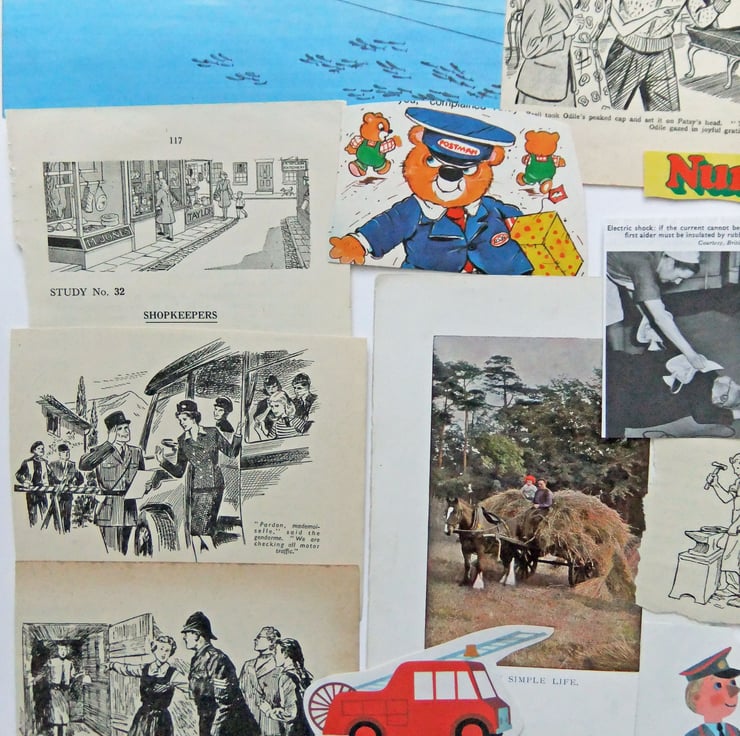 The pictures are from vintage children’s books, a children’s picture dictionary, The Children’s Encyclopaedia Britannica and children’s storybooks. Their vintage nature means that they may show some slight signs of pre-loving which adds to their charm!