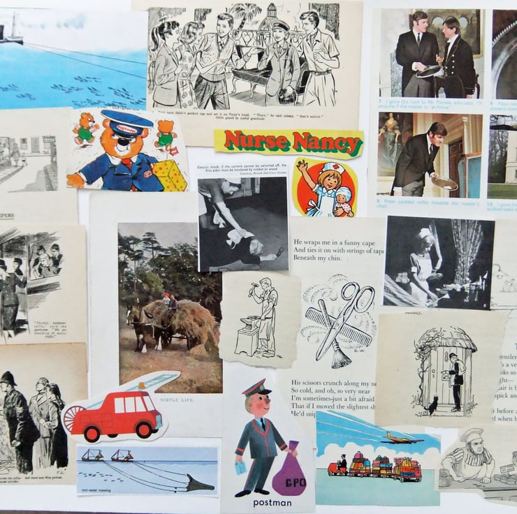 This is a fabulous Jobs/ Occupations/ Careers themed pack of vintage paper ephemera with cars, trains, planes, bikes, and buses. This pack is great for crafting, scrapbooking, collage, altered art and card-making projects.