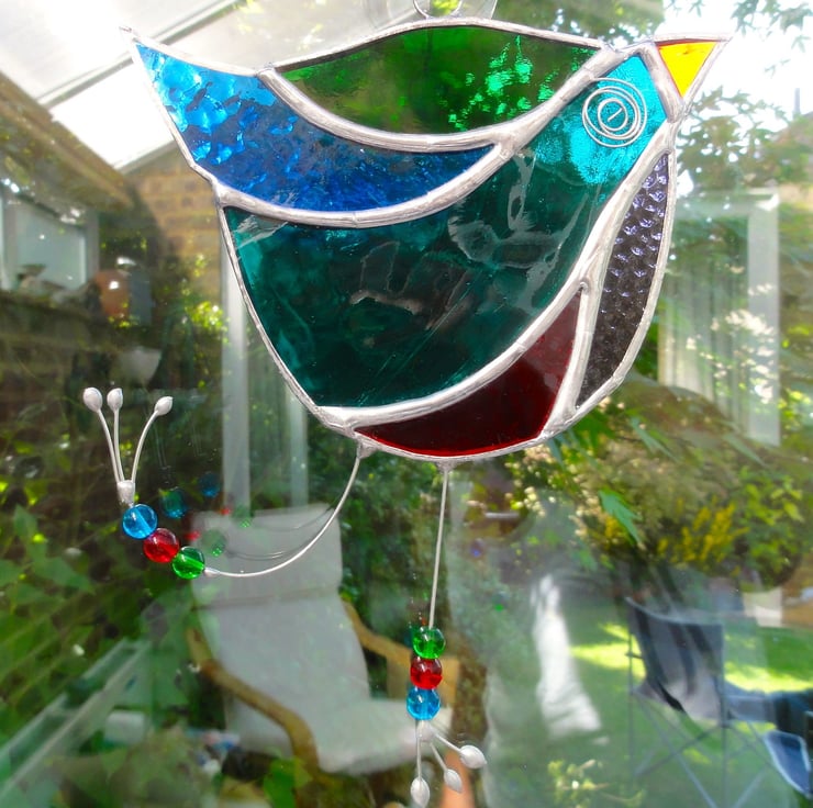 Here is a fun bird sun catcher made out of stained glass. It is quirky and fun and makes an ideal gift for all ages.