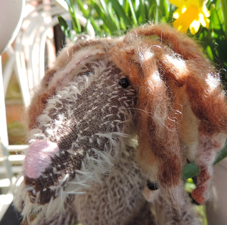 Hand sewn, fully jointed Mohair rat. Made in a brown backed beige mohair fur with beaded dreadlocks.This is not a toy...collectors item only!Approx 9" tall