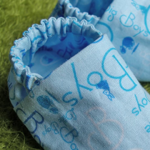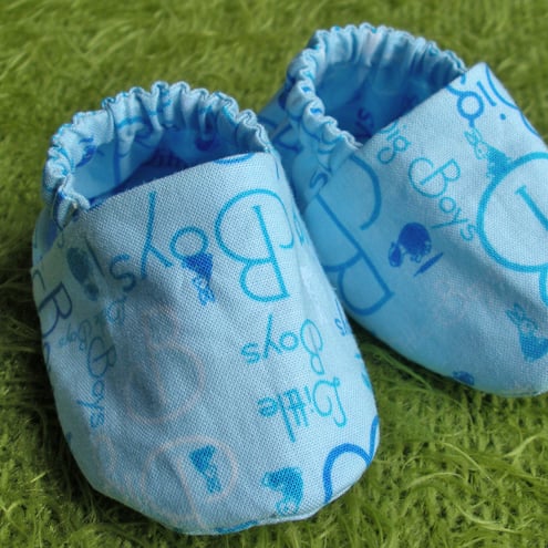 'Baby Boy' print cotton fabric make these espadrille style boys shoes. Fit for any little Prince!