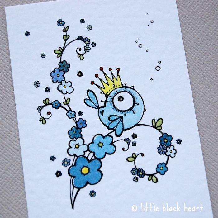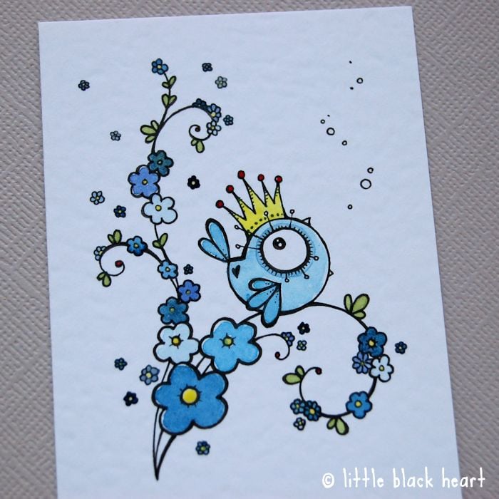 original artwork in artists pens and watercolour paints, on textured white 300gsm cardstock. drawn with a tiny 0.05 nibbed pen, and carefully painted with just the very tip of a tiny paintbrush!