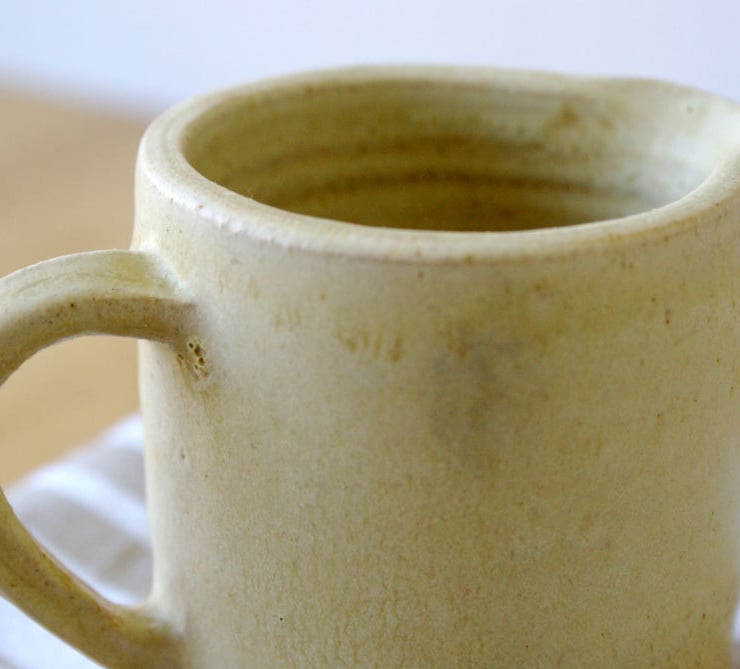 Hand thrown on my potters wheel this little creamer features straight sides, a sturdy pulled handle and a channeled pouring lip to provide a steady flow. It has a satin finish to the touch and is glazed in a soft creamy oatmeal colour.
