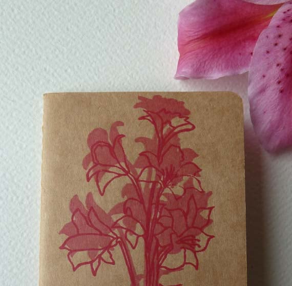 My original 'Florentine Lilies' design is printed with magenta, water based ink onto the buff coloured kraft cover.