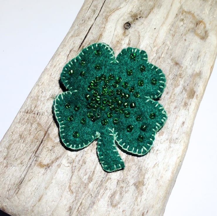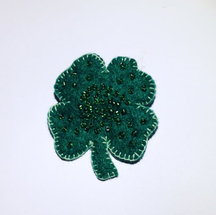 This cute brooch is hand stitched from green felt and adorned with seed beads which are individually hand stitched.