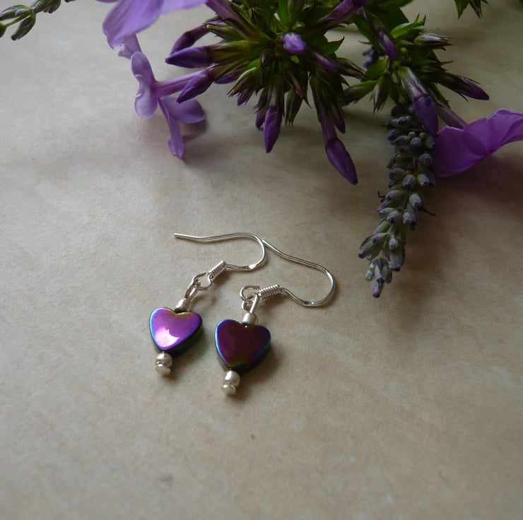 These little sweet little earrings are made from hematite heart shaped beads measuring approx 4mm. They hang from a sterling silver ear wire