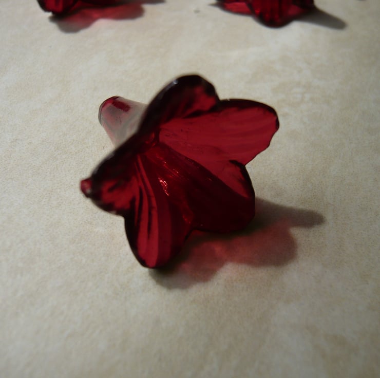 You will receive 6 Acrylic Flower Beads, measuring approx 22mm x 22mm. They are probably a more burgundy red in colour.