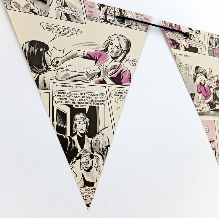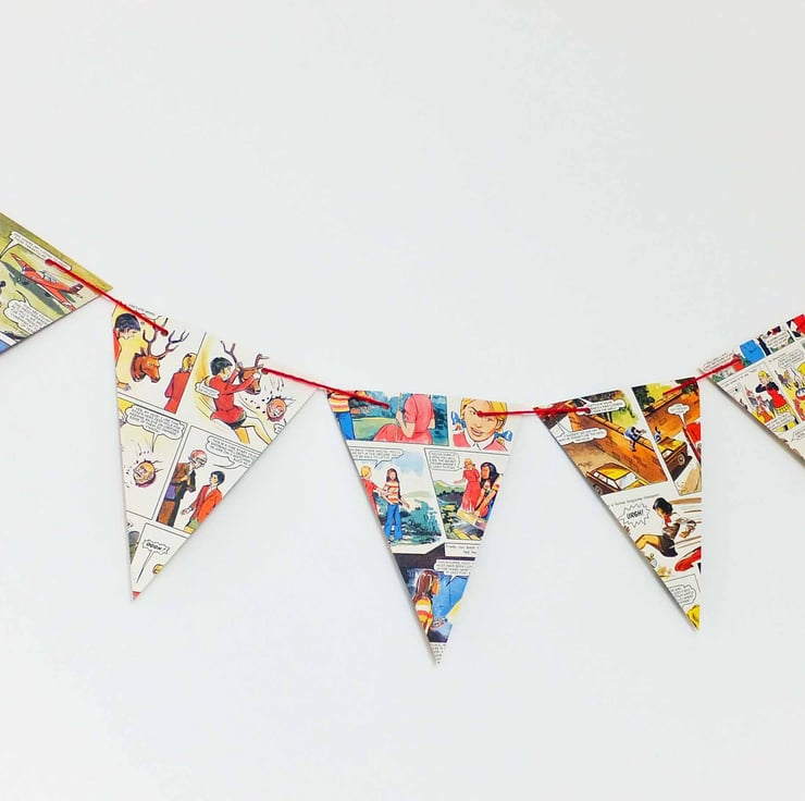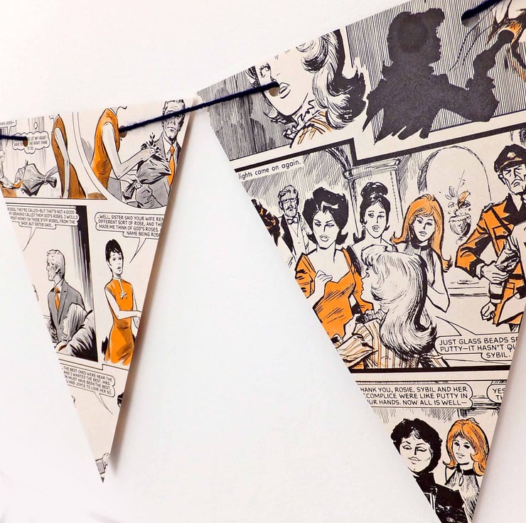 This fabulous paper bunting has been made from Mandy for Girls 1976. It is perfect for bringing back childhood memories or for decorating a girl's party, bedroom or playroom! Or for decorating your own craftroom or office to bring back girlhood memories!