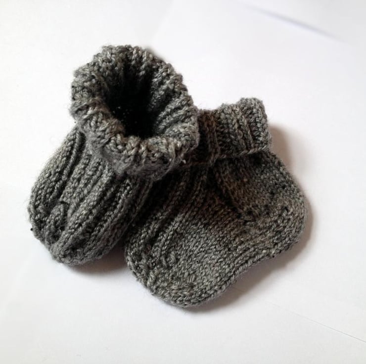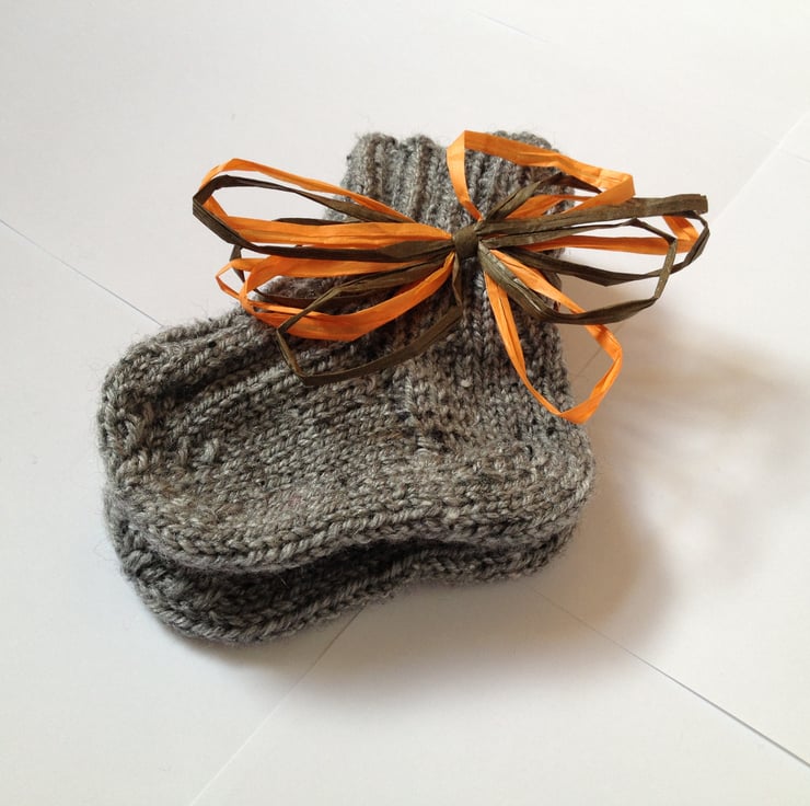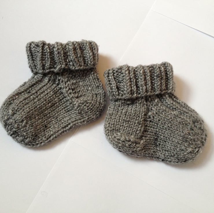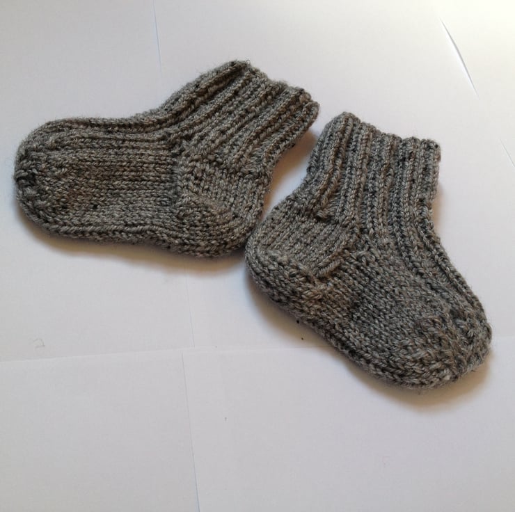 Beautiful and warm baby socks made with soft 100% acrylic grey yarn.