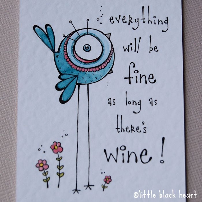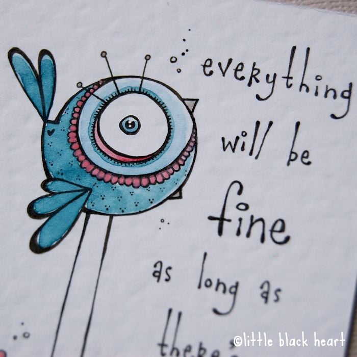 original artwork in artists pens and watercolour paints, on textured white cardstock.