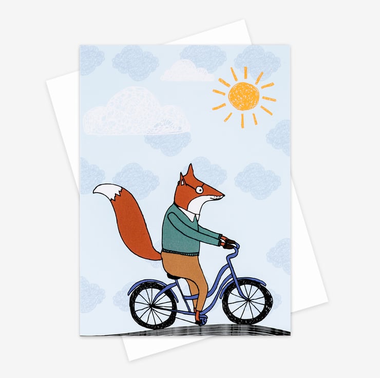 'Fox cycling' is digitally printed using FSC certified card. Perfect for any occassion,