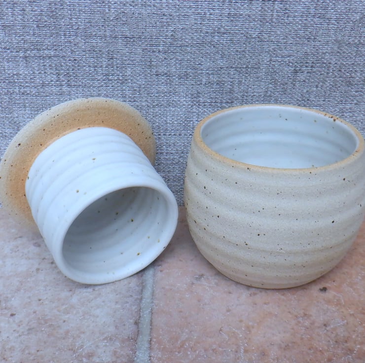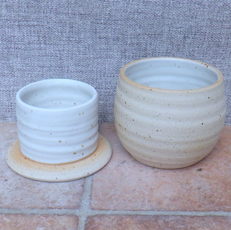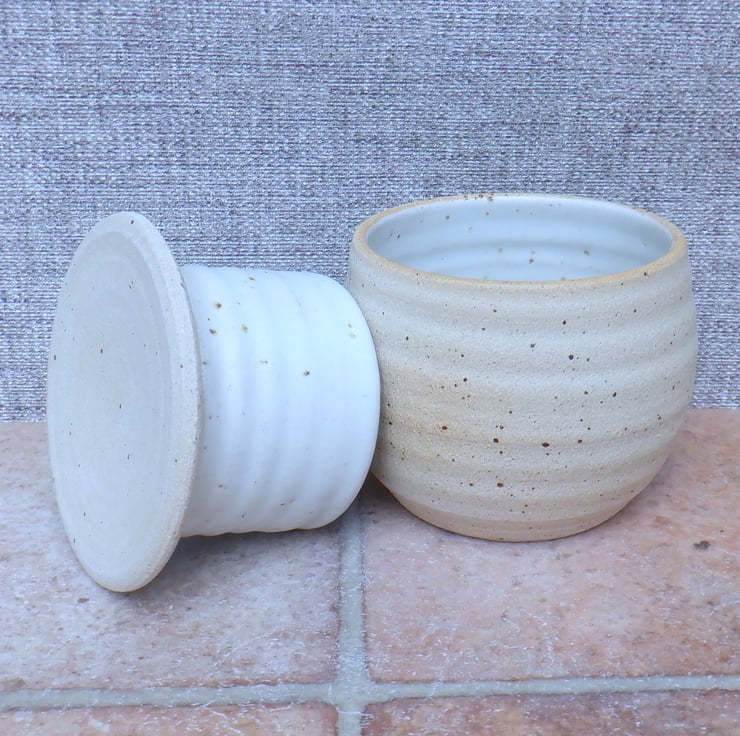 I threw the two pieces on my pottery wheel using off-white stoneware clay, and finished it in a lovely satin ivory cream glaze.