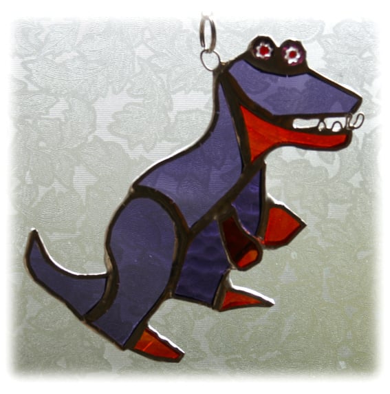 3 Trex - with green, blue or purple body and feet, jaw in red.