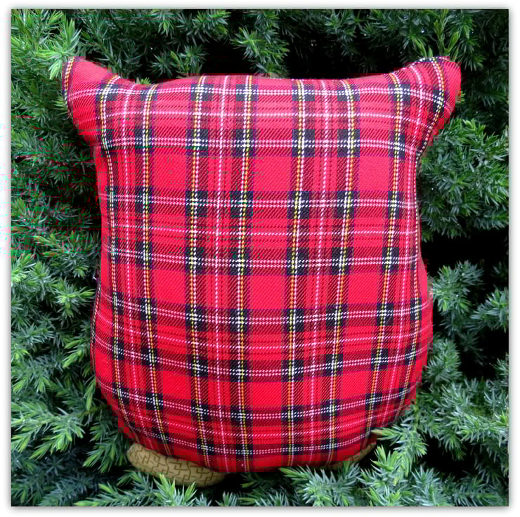 Resplendent in tartan, his wings are soft and fleecy.