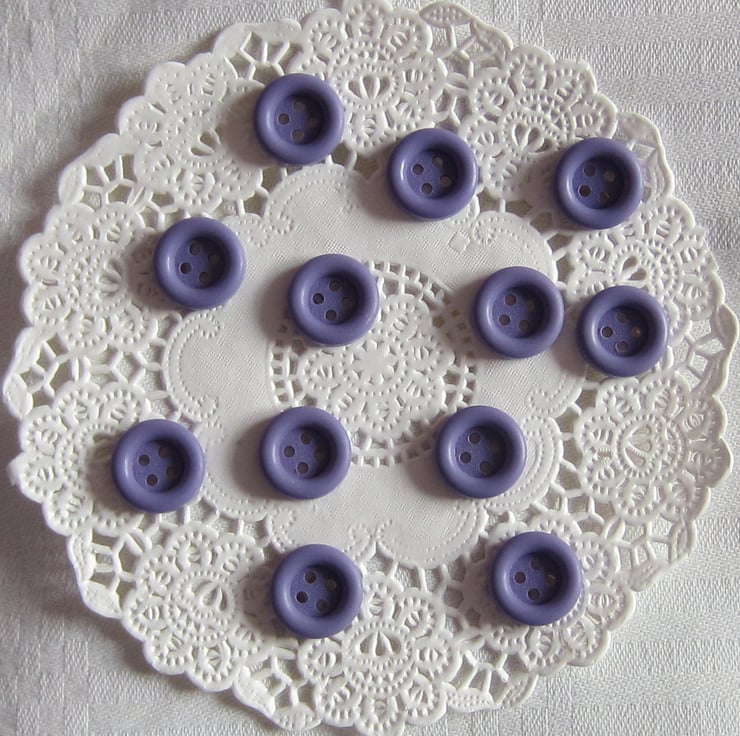 12 mauve 4 holed buttons. Each button measures 14 mm