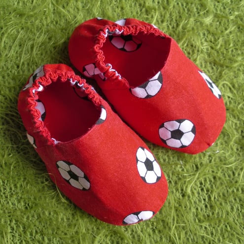 If you support team colours of red these are ideal. Football print cotton fabric make these espadrille style boys shoes. Fit for any little Premier League Player!
