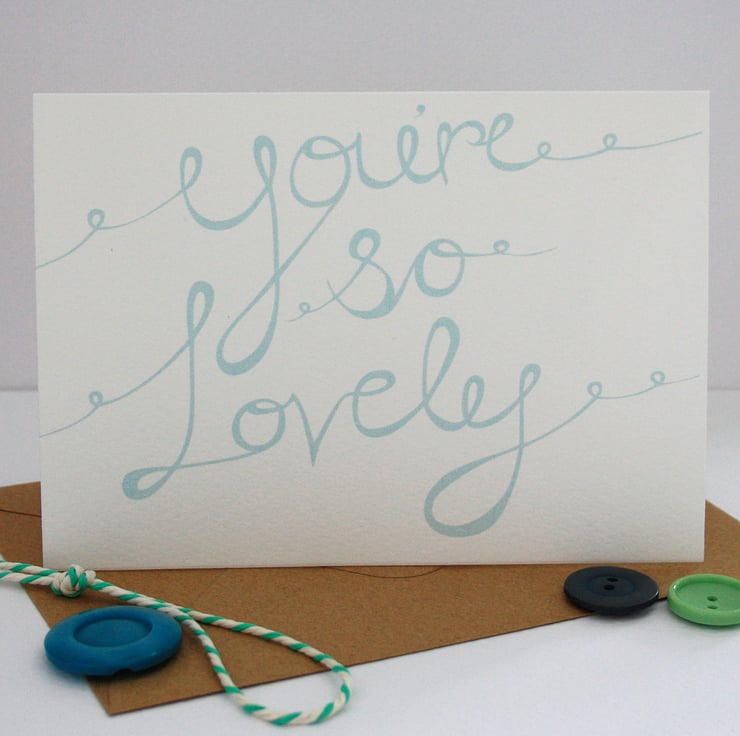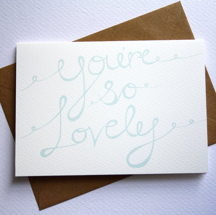 Pretty mint coloured, hand lettered, you're so lovely card.
