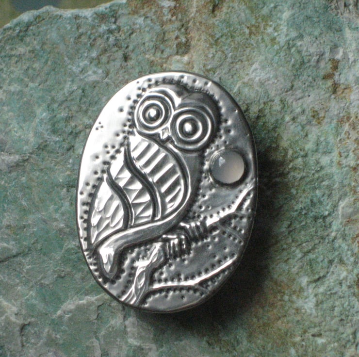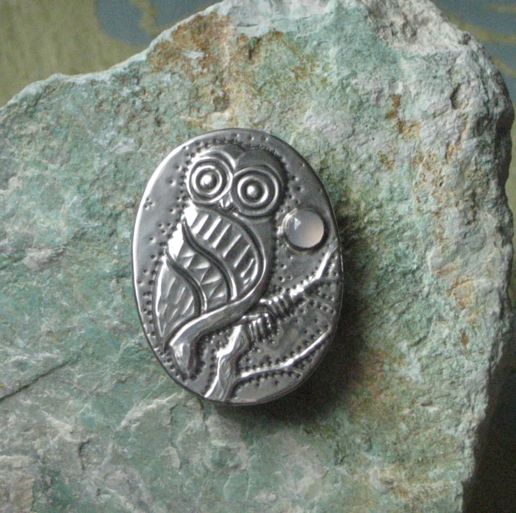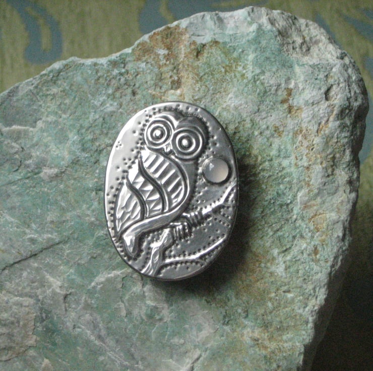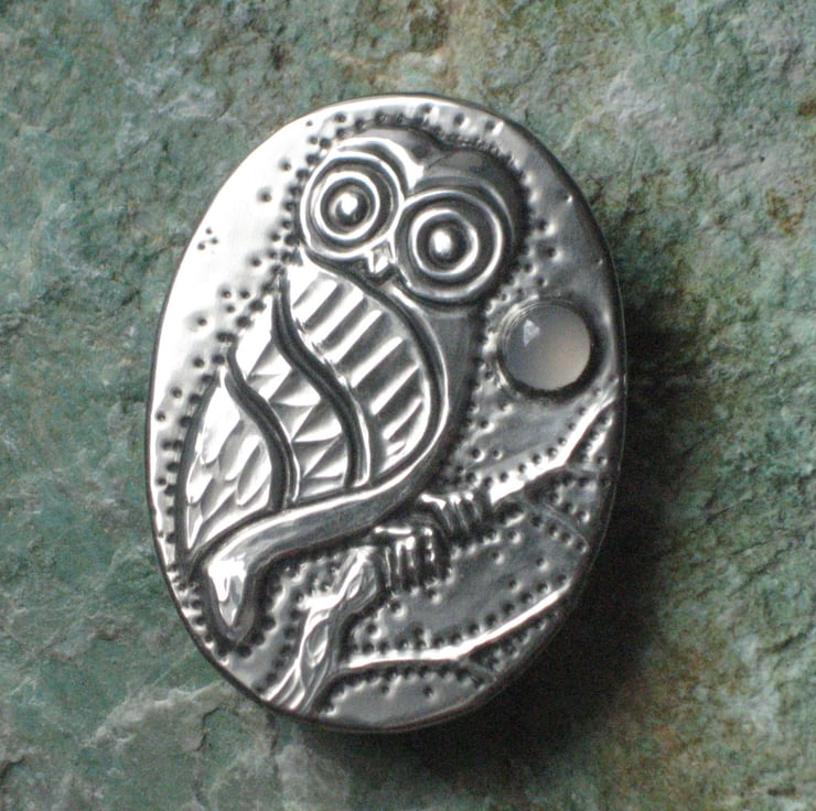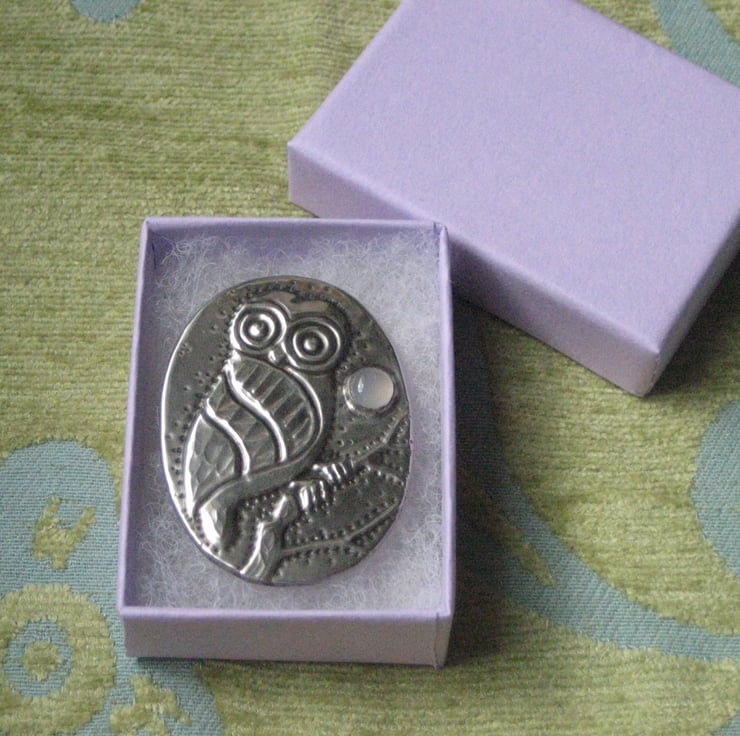 This little character sits beneath a moonstone moon, and has been handmade in modern lead-free pewter. Measuring 44mm x 33mm, it has a a 25mm pin with safety catch. Presented in an attractive gift box (may differ from that shown). A great gift for a 10th Wedding Anniversary, Mothers' Day, Valentine's Day, Christmas or Birthday.
