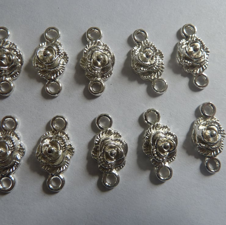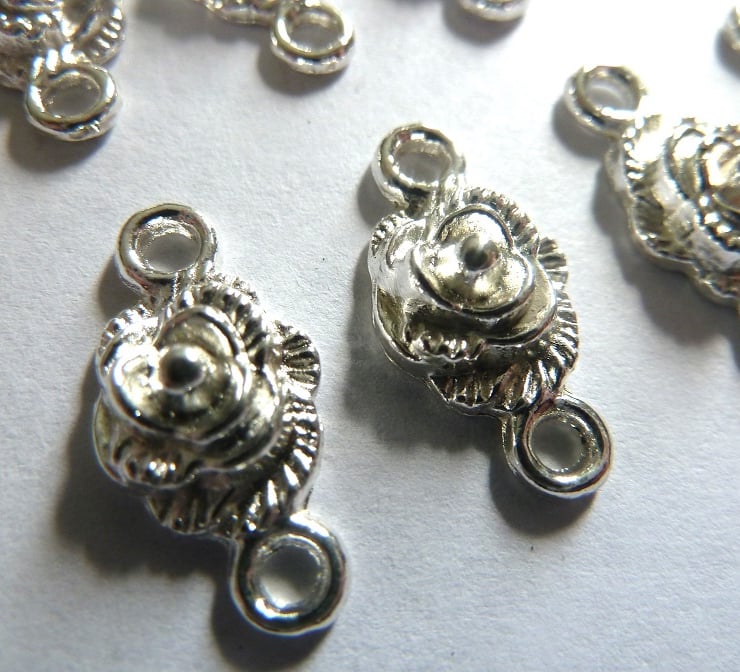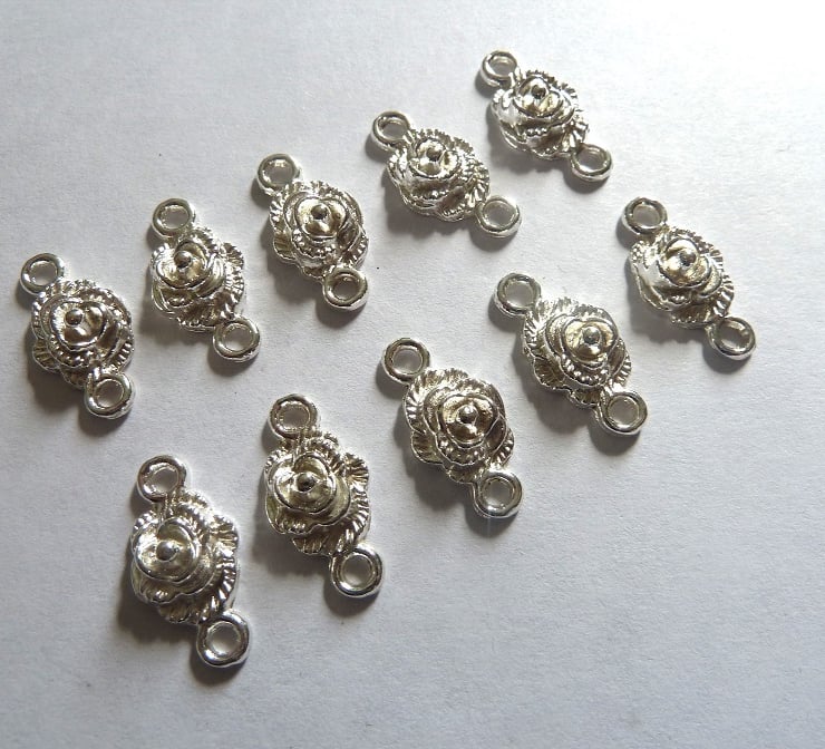A set of 10 silver plated flower connectors.