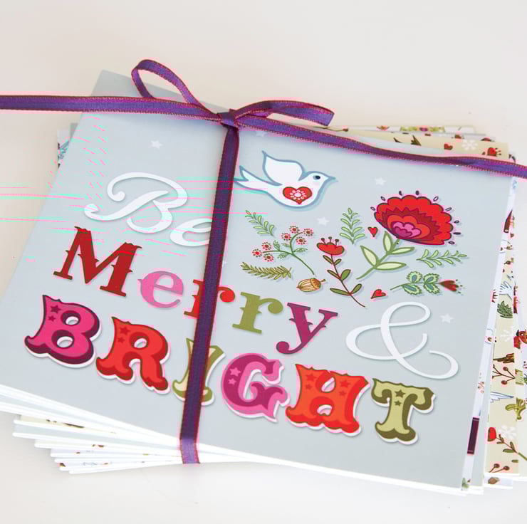 Pack of 6 Christmas cards in my original designs. 1 of each of the following 6 designs:
