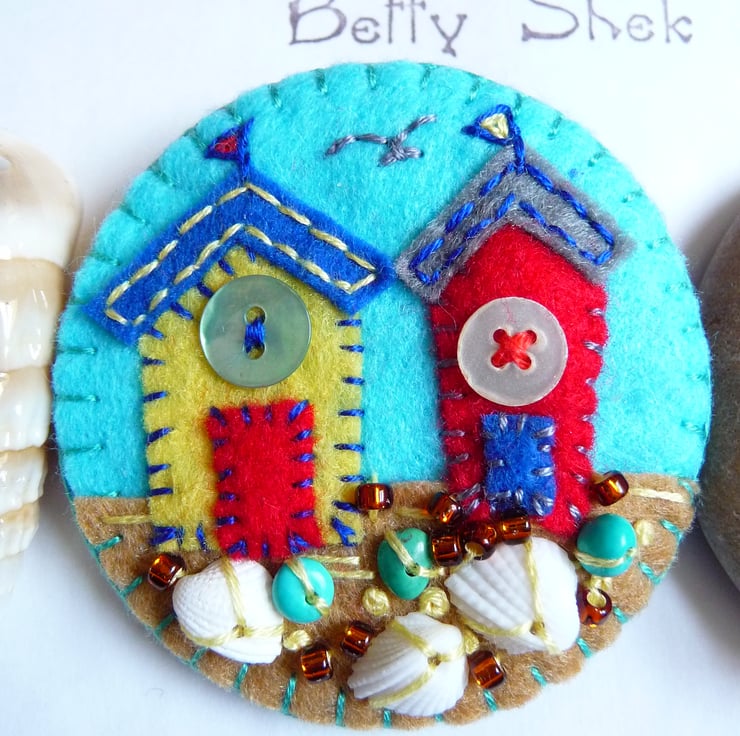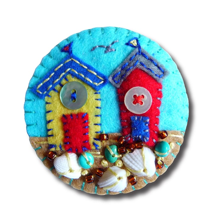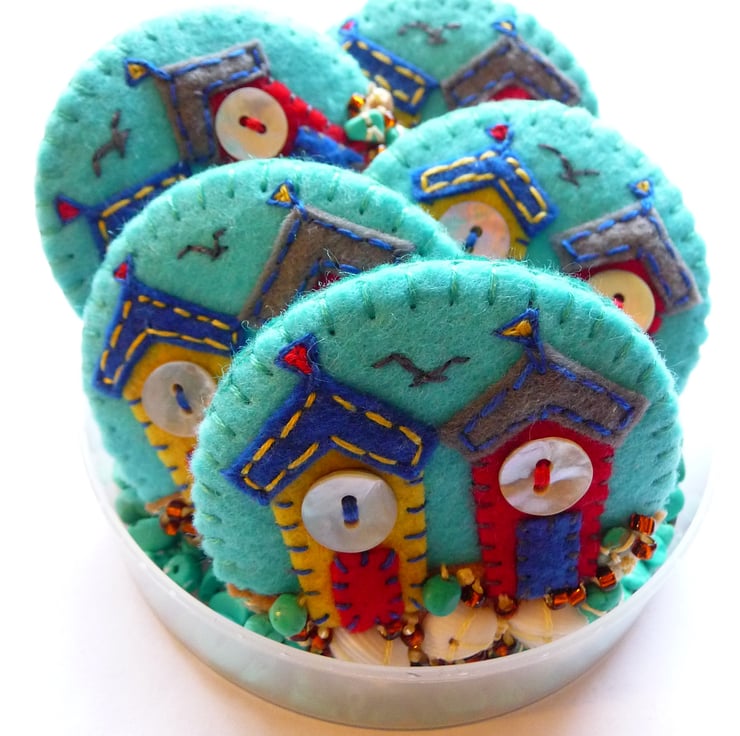 Beside The Seaside Theme - Beach Hut Handmade Felt Brooch