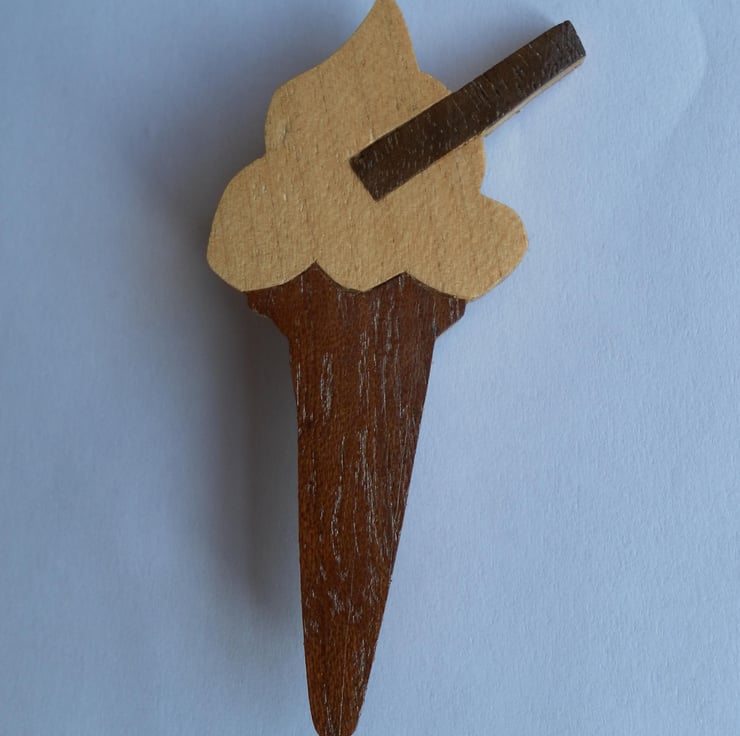 Ice Cream, hand cut wood veneers glued to a thin piece of wood as a backing.