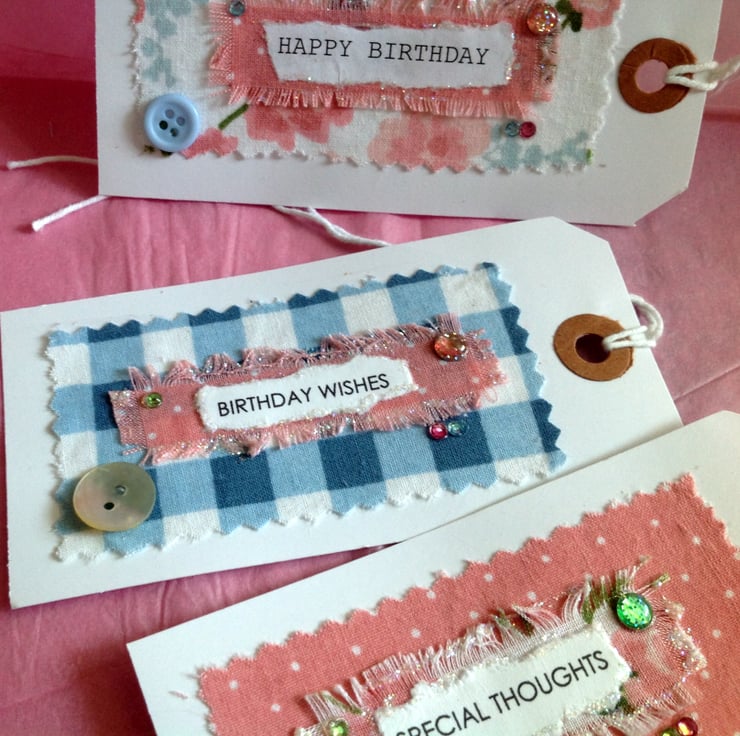 The listing is for a set of three handmade gift or message tags which can be personalised with your own sentiment
