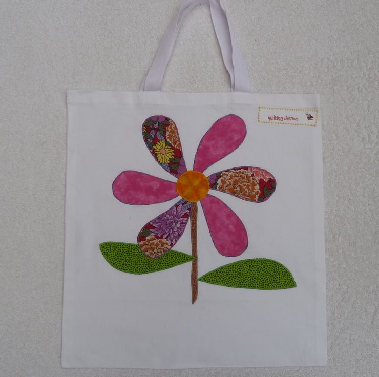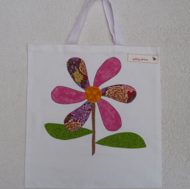 I had great fun designing this flower to applique onto the cotton bag to make a fantastic accessory and useful bag.