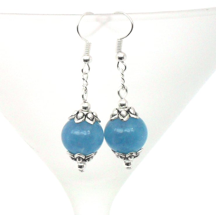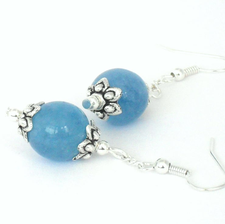 Beautiful 12 mm blue quartz and tibetan silver beadcaps look great in these one-of-a-kind earrings.