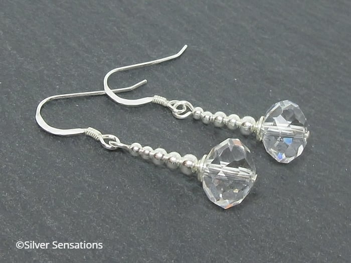 Faceted Clear Crystal Rondelle Beads & Sterling Silver Drop Earrings
