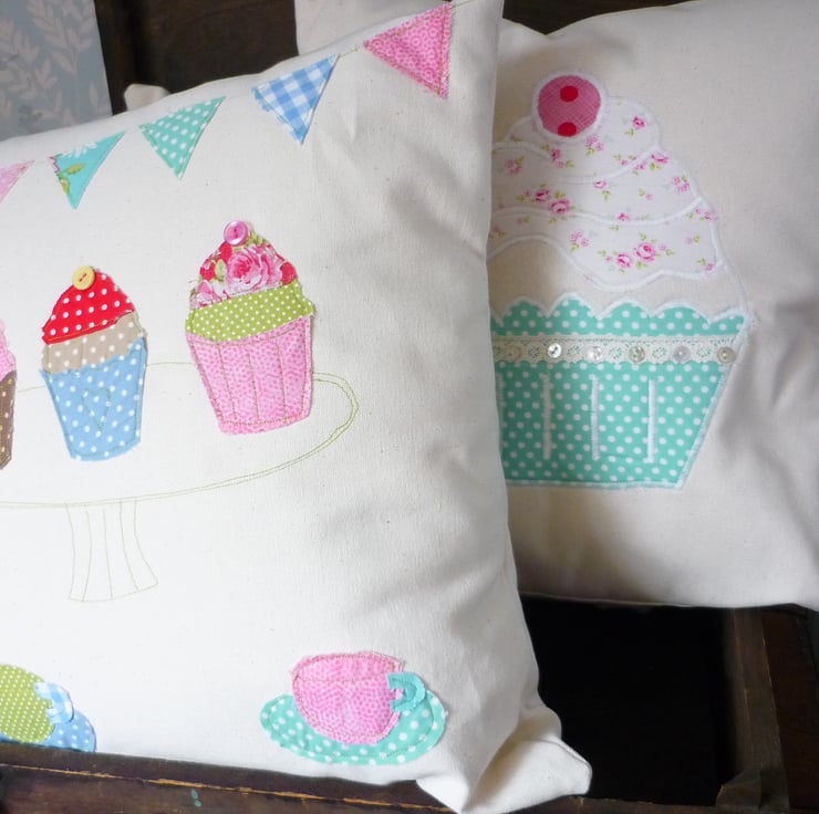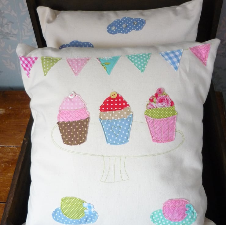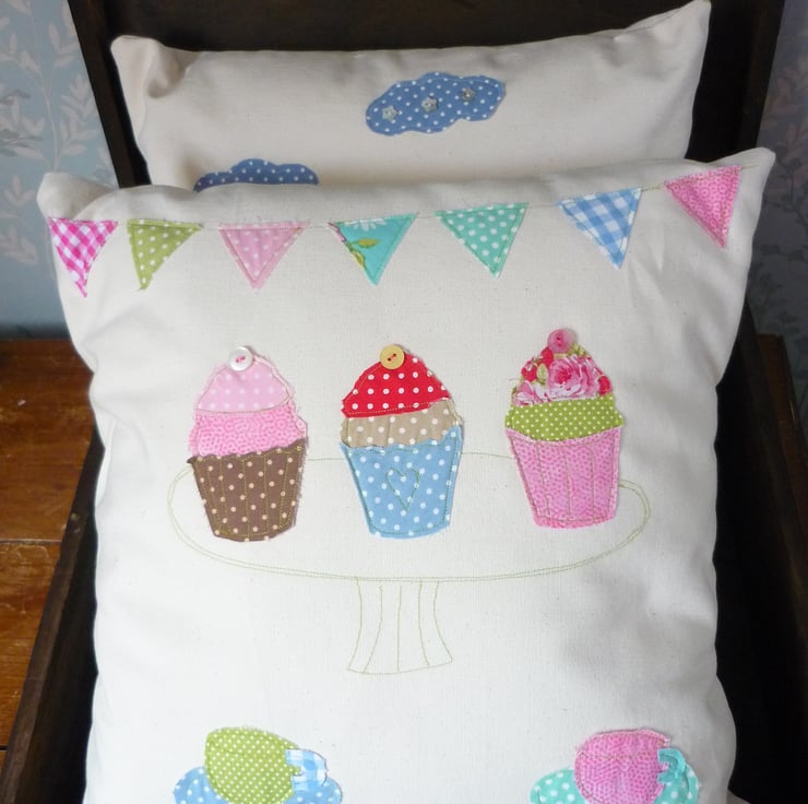 This cupcake cushion has been designed and handmade by myself from a mix of pretty fabrics.