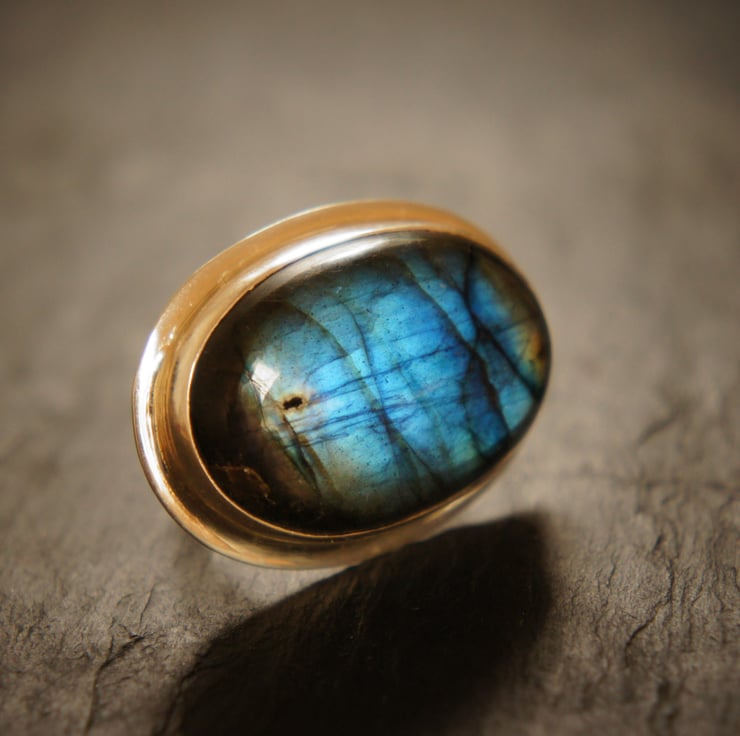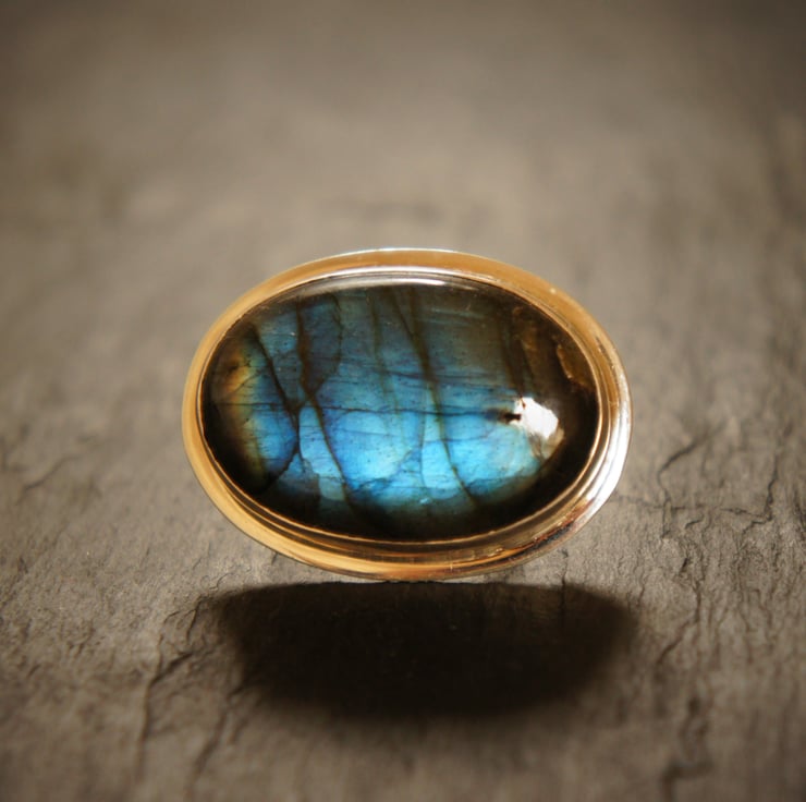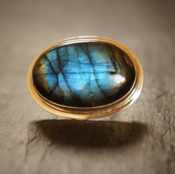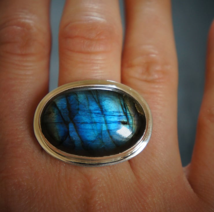 A Labradorite oval shape, sterling silver ring.