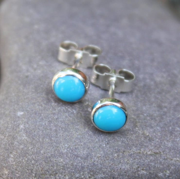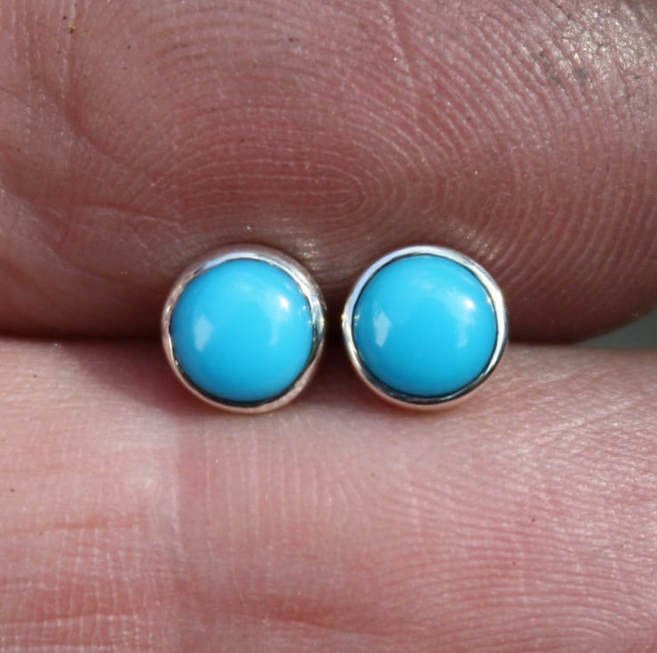 The turquoise cabs measure 5mm diameter. the silver has been polished to a bright finish.