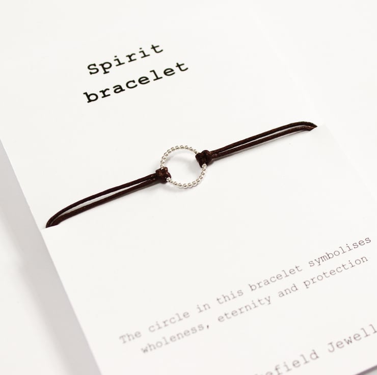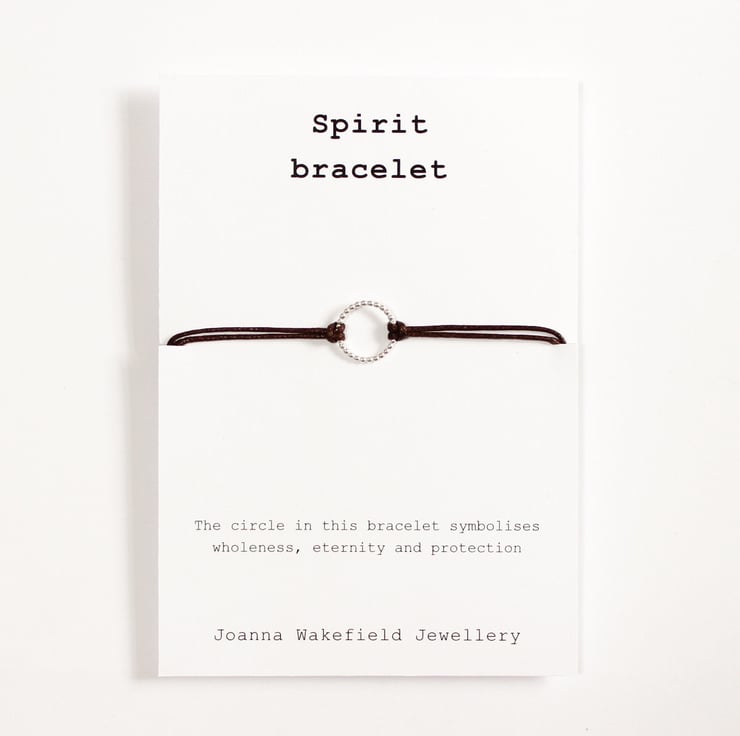 The bracelet is displayed on a card complete with a description about the symbolism and meaning behind the element of Spirit and it's link to the circle.