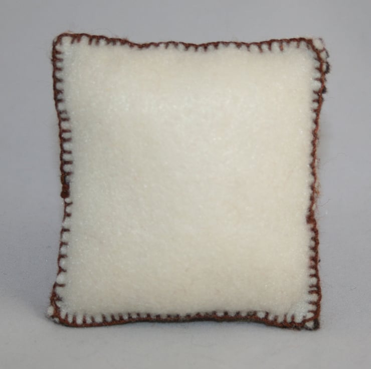 The back of the pincushion is cream 'eco' felt. The pincushion is gently stuffed with polyester filling.
