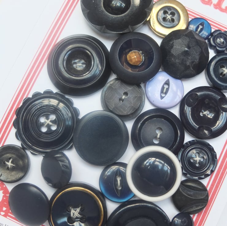 24 Vintage Navy BLue Buttons, all different ages and sizes.