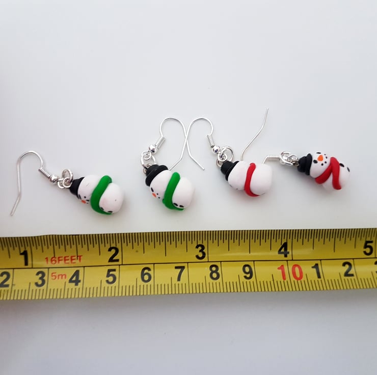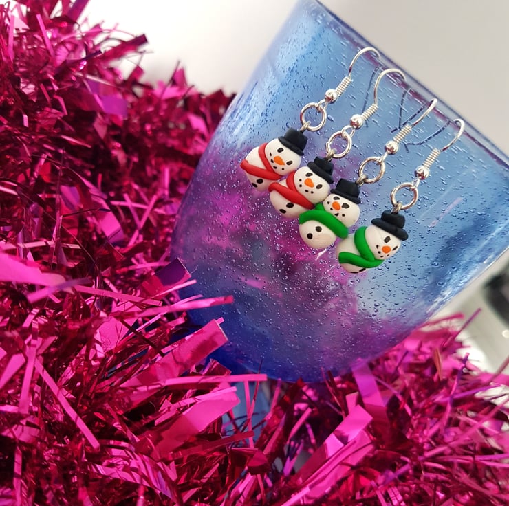 Christmas snowmen with scarves and black hats on drop style earrings! Very cute and retro!!