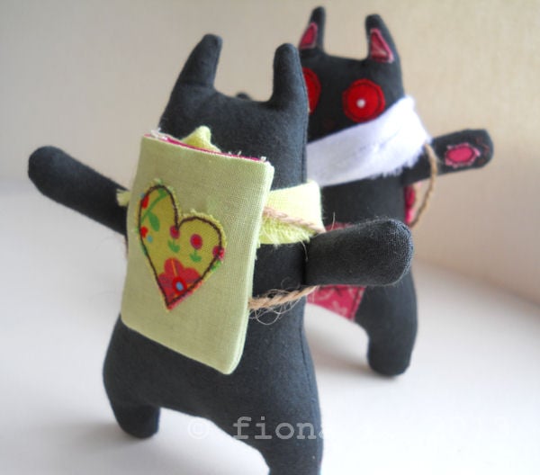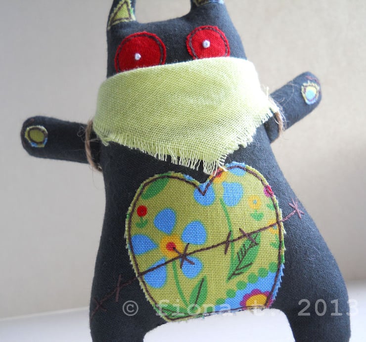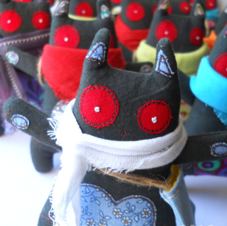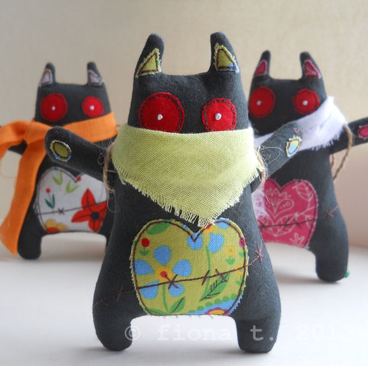 these zombie kittens are made entirely on a domestic sewing machine. everything is cut, stitched & drawn freehand by me, ensuring it is unique, well made and securely constructed.