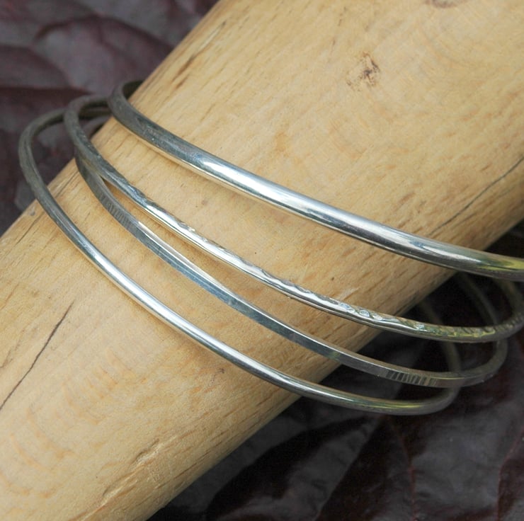 Sterling silver stacking bangle, slim with a square profile