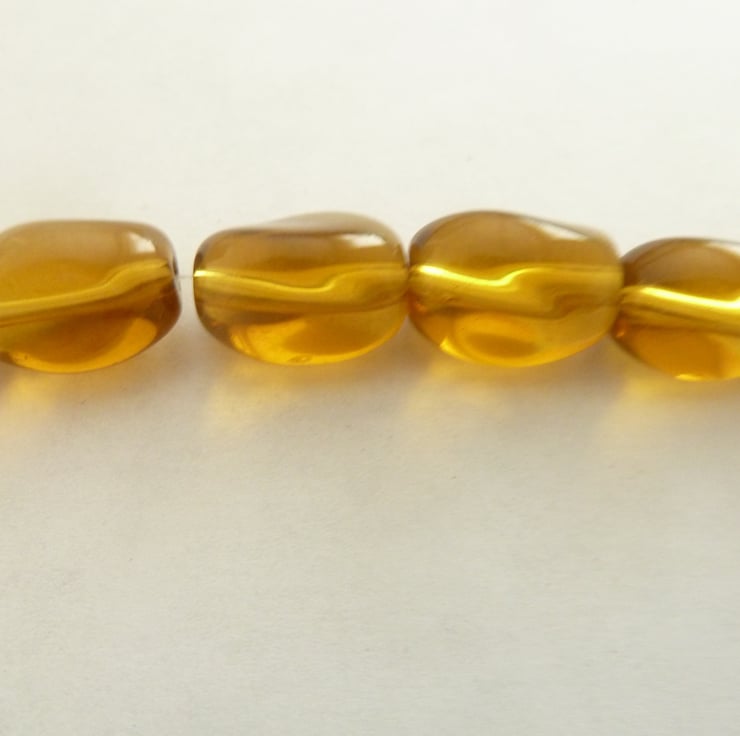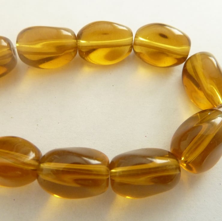 A pack of 12 amber glass twist beads.