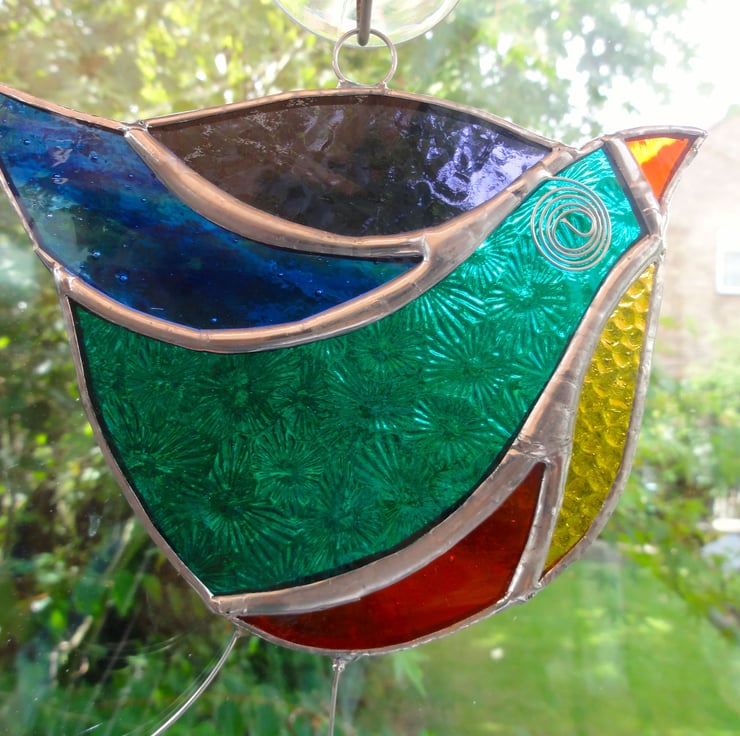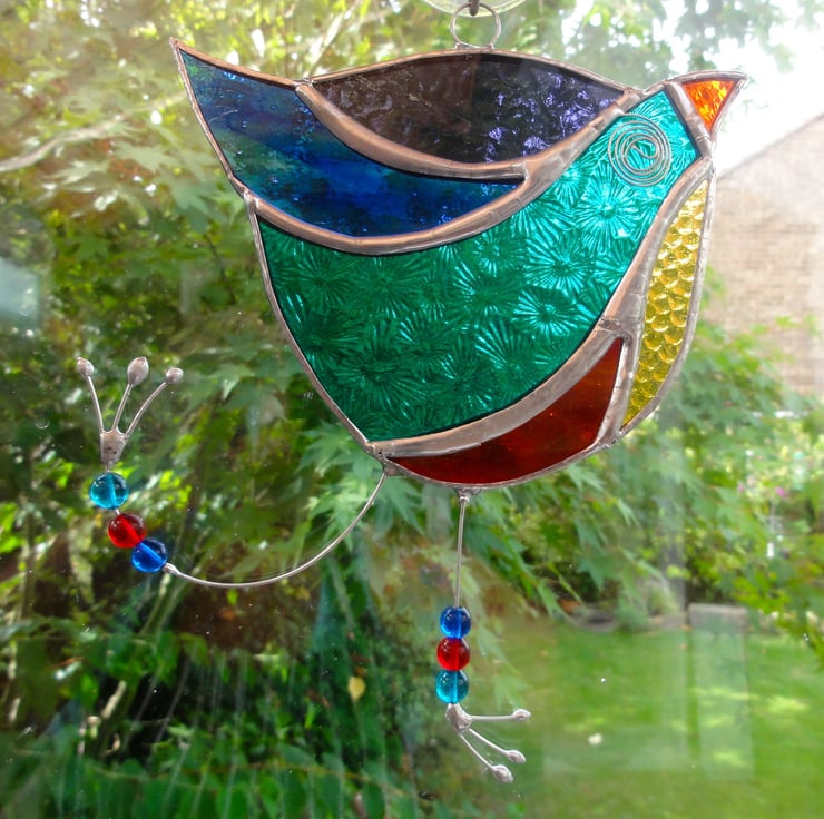 Here is a fun bird sun catcher made out of stained glass. It is quirky and fun and makes an ideal gift for all ages.