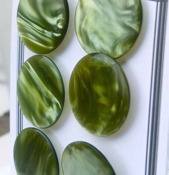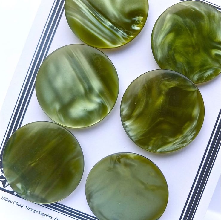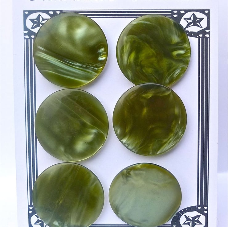 6 Vintage Pearlised Minty Green Buttons, I think these maybe 60's, they are 38mm and rather lovely!