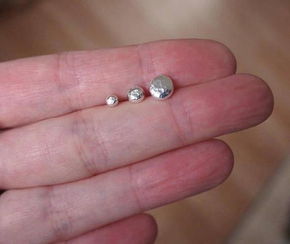 Hypoallergenic Argentium® silver stud earrings, studs with hammered texture.