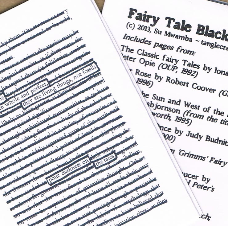 Fairy tales are a constant source of inspiration for me. I've recently been exploring constrained writing techniques, and when I applied the blackout technique to random pages from my collection of fairy tale books, the results which emerged were quite fascinating...