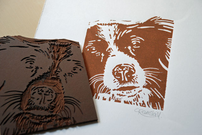 While working up in the Lake District these hard working dogs were a regular sight on the fells. They are such beautiful, spirited dogs and make perfect linocut inspiration.